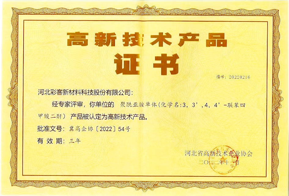 河北彩客新材料科技股份有限公司是一家專注于高性能精細化工產品研發(fā)、生產及銷售的高新技術企業(yè),主要產品為高性能有機顏料中間體(DMSS、DATA、DMS、DIPS)、食品添加劑中間體 DMAS、新材料聚合單體 BPDA 等。